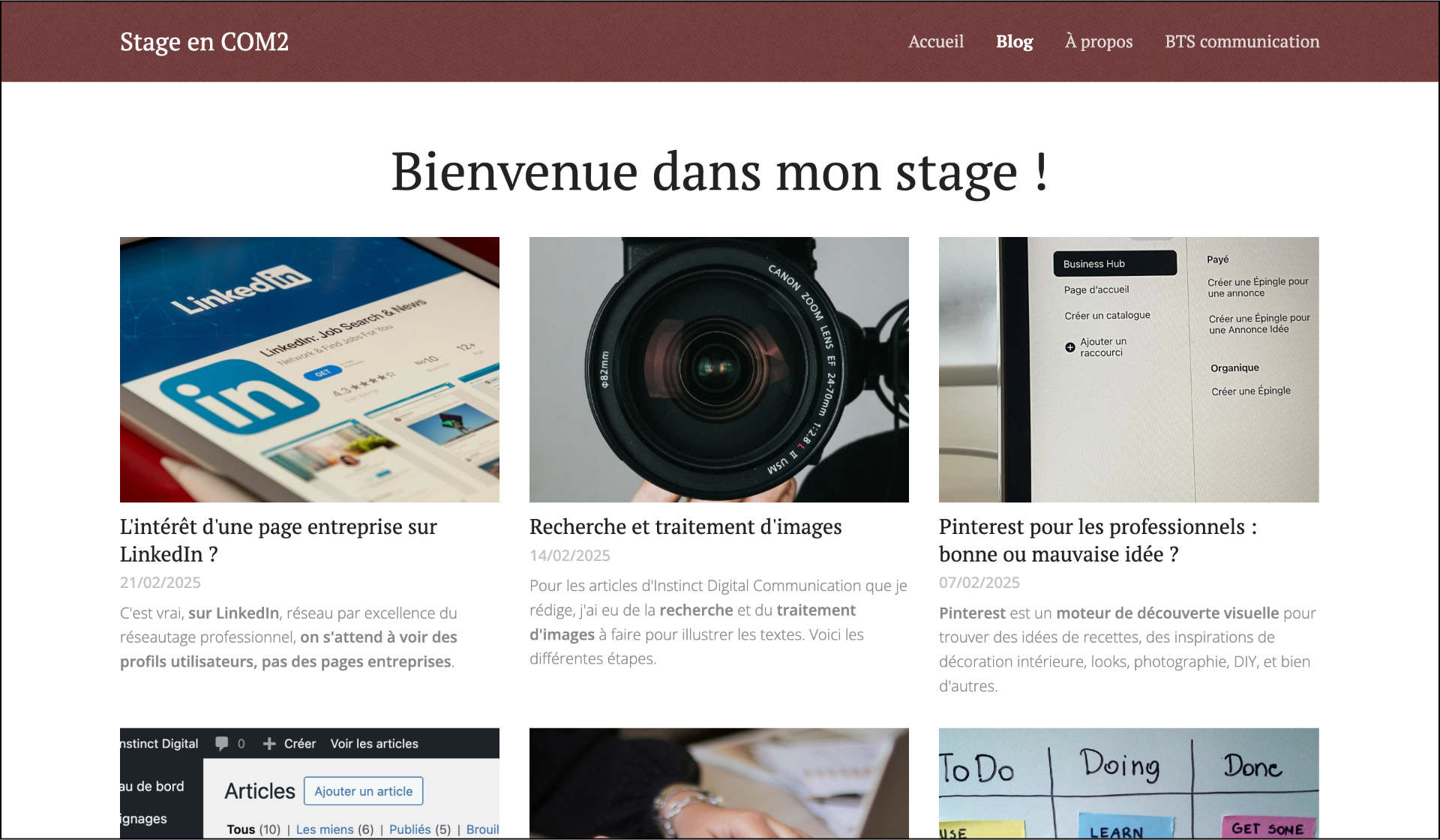 Mon stage de deuxième année a duré 6 semaines, aux côtés de Christelle MARTIN de l'auto-entreprise Instinct Digital Communication. La responsable de ma promotion souhaitait un compte rendu de stage sous forme de blog, avec des articles parlant de nos missions de stage et présentant 6 de nos productions.